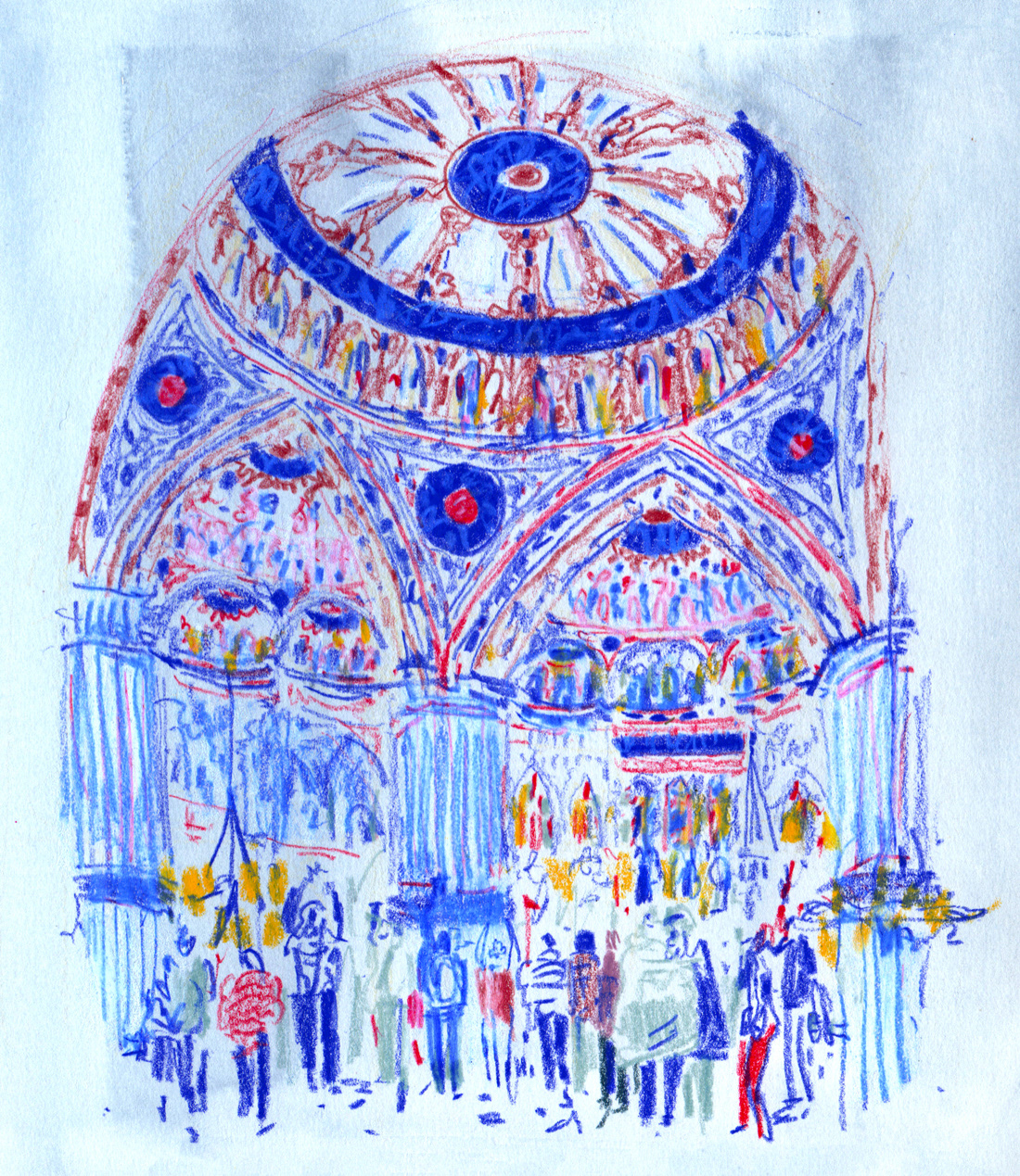 I spent time looking at mosques in domes in different cities. I felt drawn to the expansive sense of architecture both from outside and from within. Here is what I saw.