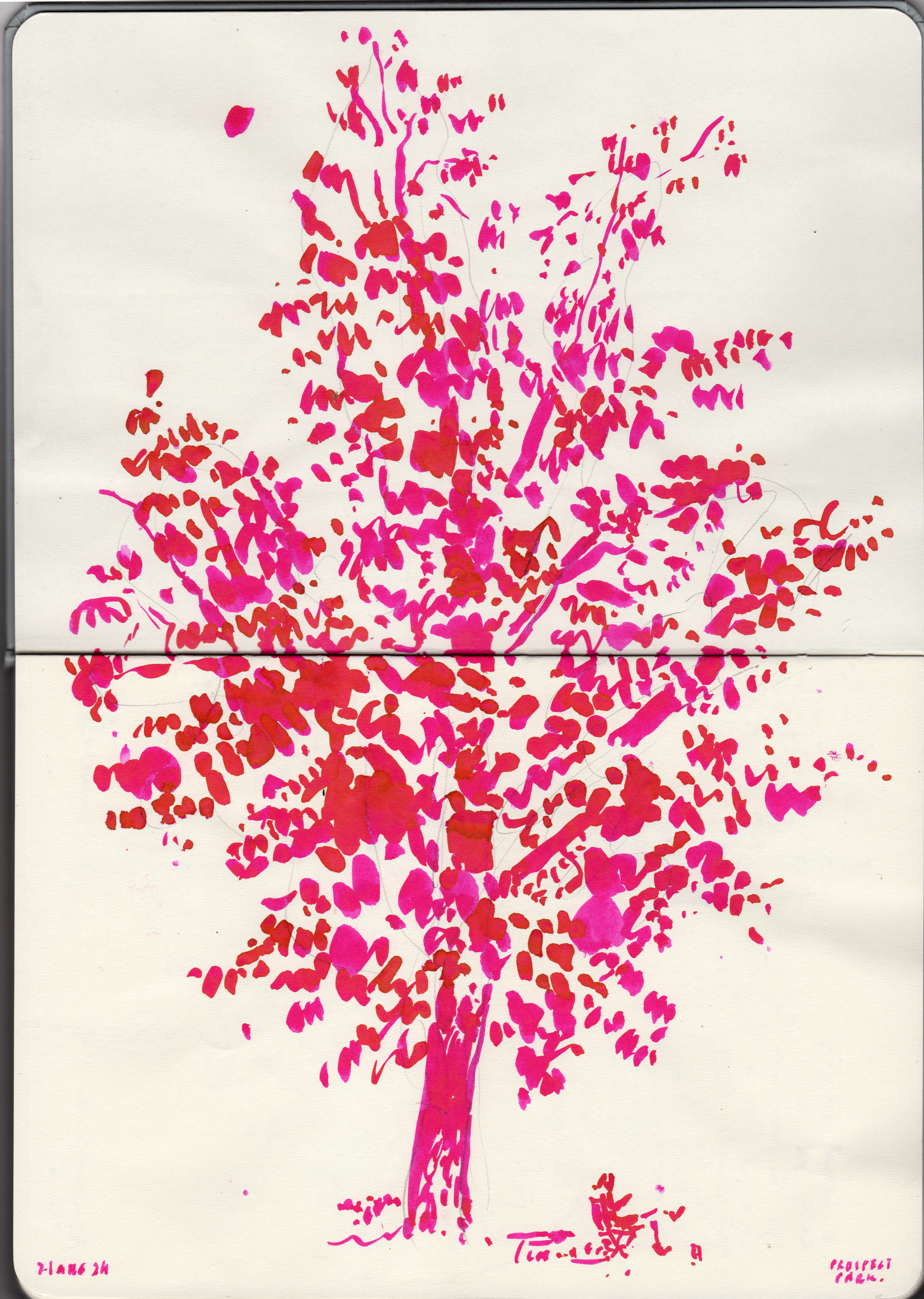 A series of drawings and paintings exploring mark making and the architecture of trees, made on location, mostly in New York City.